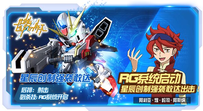 机体6星时,伤害提升50%。沉默时间加长3秒。RG模式期间每次受到不安、沉默、瘫痪效果时,立即解除效果,并立即释放技能星创光束加农,冷却6秒。