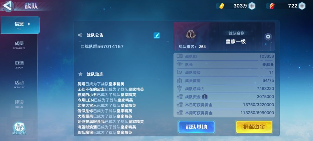 我们收人的原则只有一条:活跃玩家。(能够做完战队任务,完成战队活动,不强求星币捐赠)