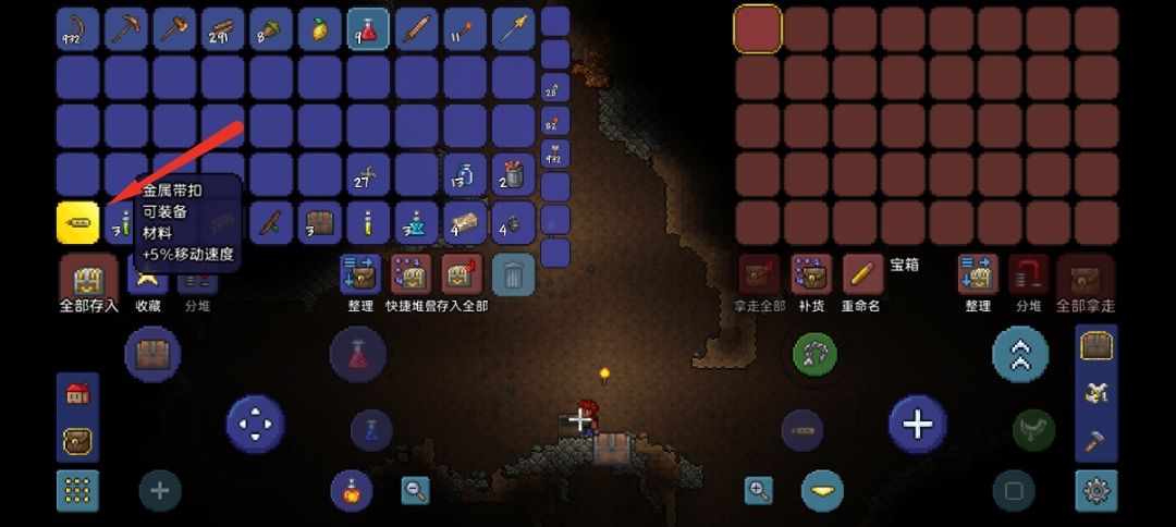 金属带扣:饰品,可装备在配饰栏,加快你的移动速度,装备后其附有的增益效果也会一并生效。