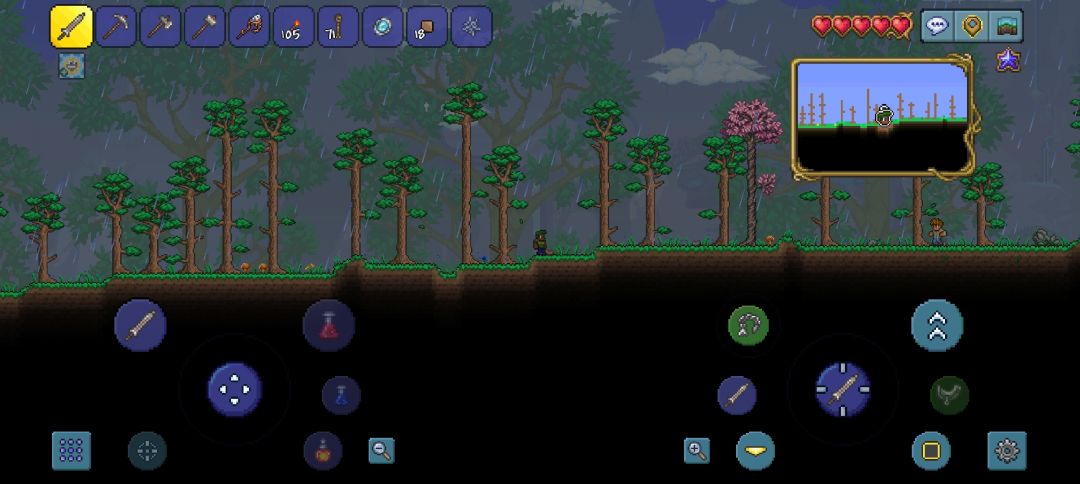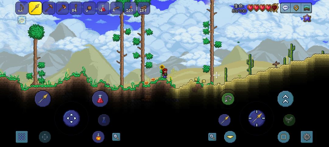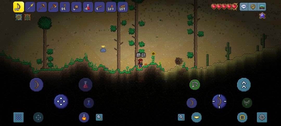 地形总结:遇到腐化之地(血腥之地)和丛林不要强行硬闯,前期探到这里就已经够了,我们接下来就需要转战地下升级装备了。另外沙尘暴时期的沙漠也不能硬闯,等待沙尘暴结束后再通过。