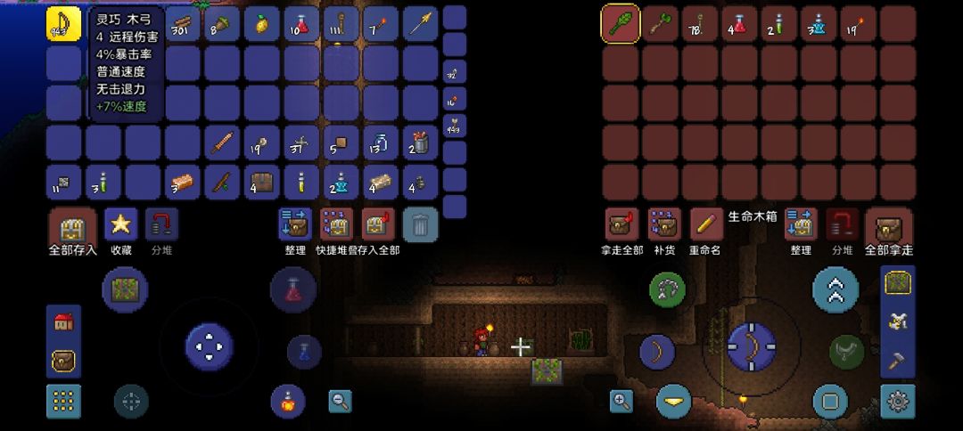 此外还有火把,木材和钱币等物品,这里就不过多介绍了,大家应该都理解,钱币会在后面与NPC一起介绍,箱子内其他物品我会遇到后再和大家讲。