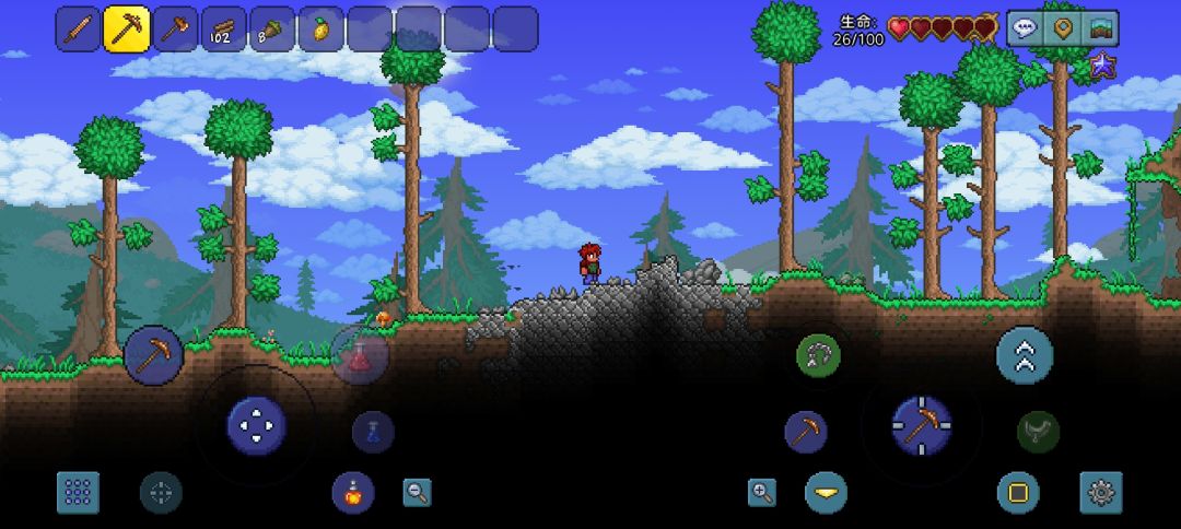 在地表有时候会有石头,我们选中镐子,挖掘30块石头!(方法同砍树)