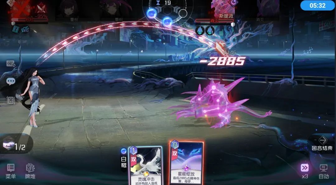 卡组的配置可以说很低配很低配了,白鹭是豹子头萌过这关[唯一]的选择!技能卡牌[星能绽放]必须要带,其他卡牌尽可能1费或者0费,因为要保证白鹭在只剩一个人的时候打出终结技(0+1+1),怕麻烦抄攻略君的卡组即可!