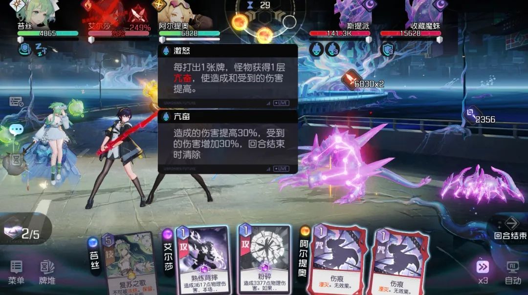 攻略君在尝试使用常规技巧时发现根本无法抗住boss的伤害,每一用一张卡牌,boss伤害就越高,单纯叠加护盾也非常难抗满5回合。