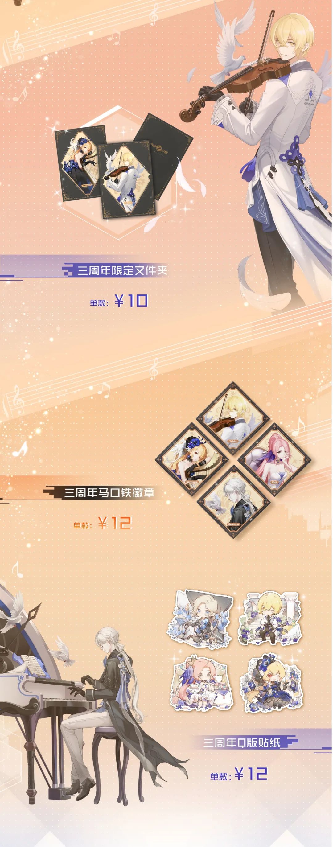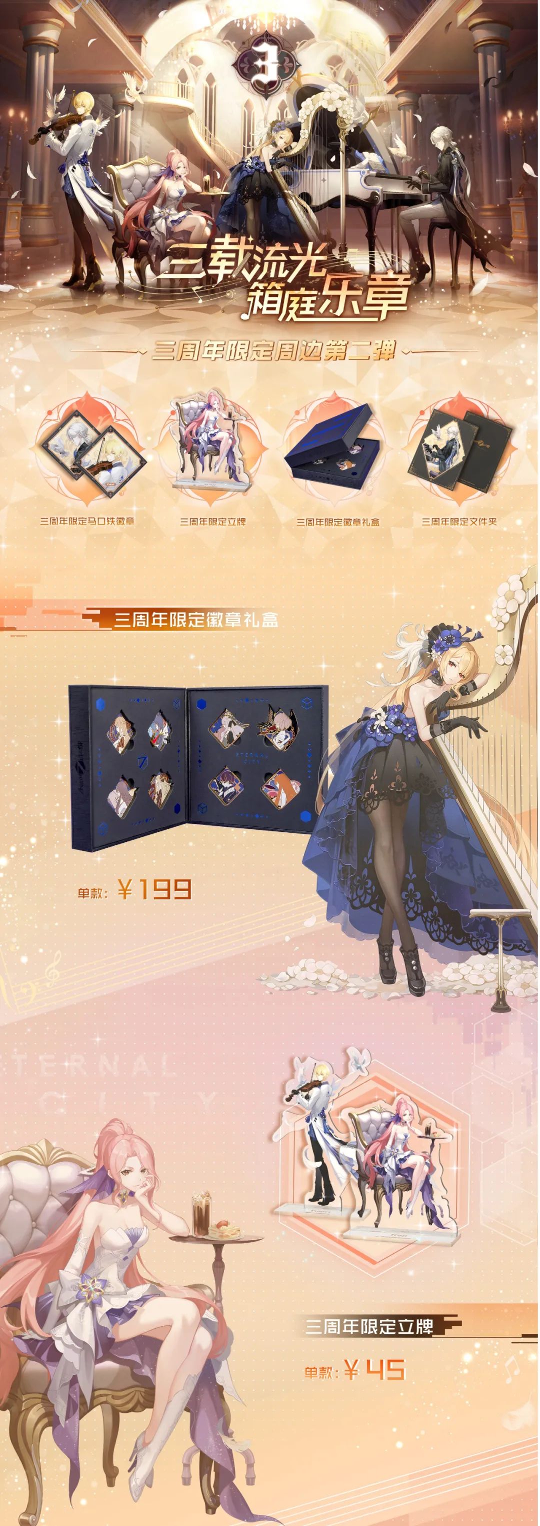 大家期待已久的三周年纪念周边第二弹预售开启!三周年限定徽章礼盒、立牌、文件夹、马口铁徽章、Q版贴纸等全新周边来袭,指挥使快把它们带回家吧!