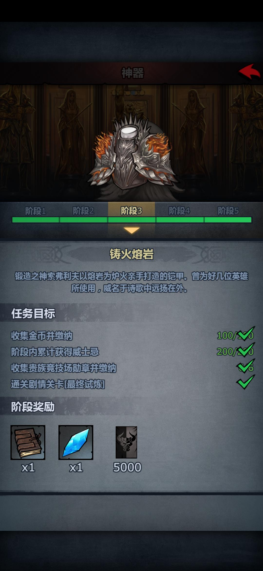 神器甲基本上就是一个行走的护卫僧而且还能反弹近战伤害整体的话比神器锤子厉害,四法一剑圣一屠骑打要塞更稳定了