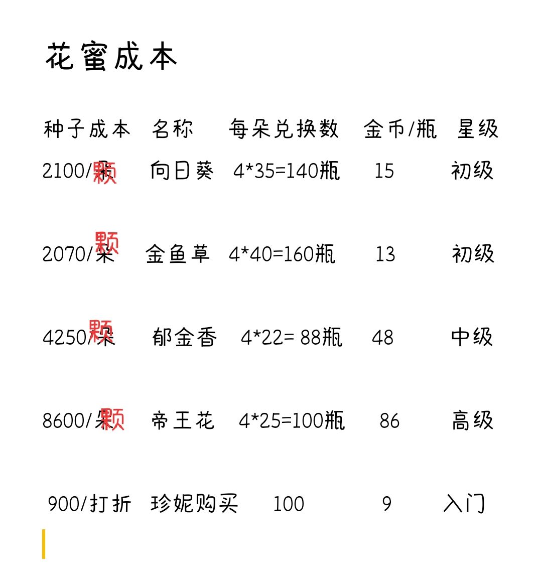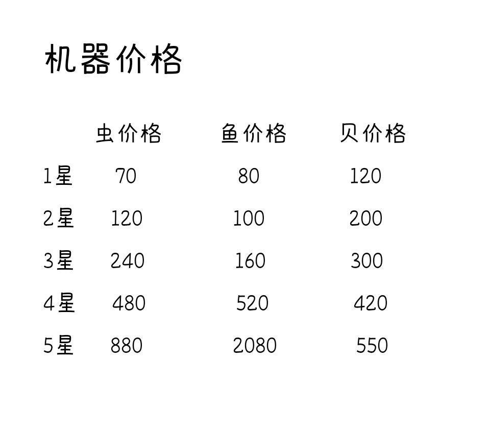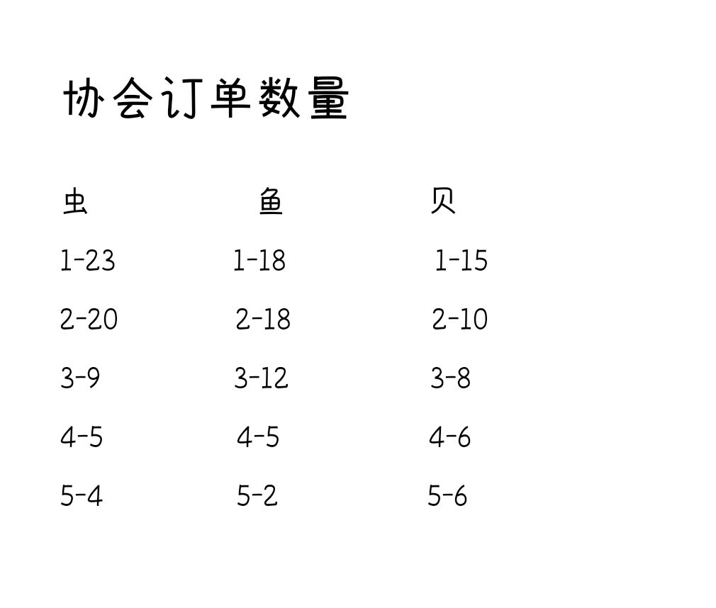 为方便计算挂机利润,列花蜜,虫,鱼,贝单价及协会订单所需数量