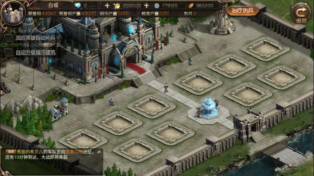 1个1级民居每小时生产的预备役才几十个,10个民居也不过几百预备役,而一个1级橙色英雄能带领的士兵数量在2000左右。所以要等多久才能补满所有英雄的兵啊,兵到用时方恨少,唯一能迅速解决烦恼的操作就是一个政令+卷轴,凭空生出10000士兵,帮助战狂立刻出征!