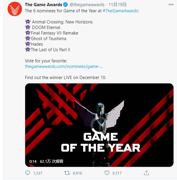 每年最具影响力的游戏颁奖典礼TGA已经落下了帷幕。所有的获奖名单都已揭晓,今年的“年度最佳游戏”由《最后生还者2》获得。