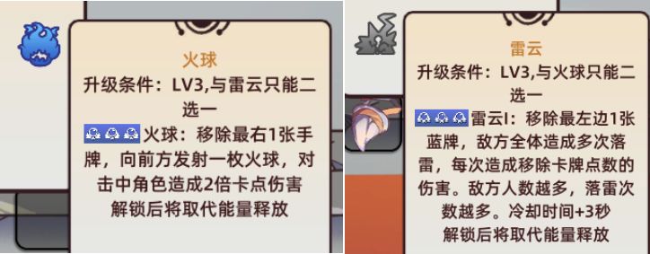 这里主要用到两张,一张法师自带的“雷火”,主要作用就是在手牌大于2张的时候使用,可以在不移除本张卡牌的同时,丢掉最右侧卡牌并触发其丢弃效果。