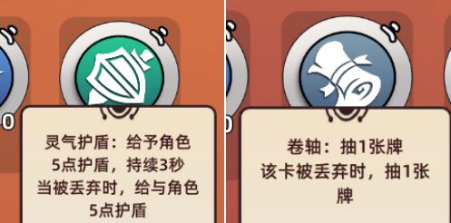 辅助的卡牌一张选择加护盾,一张选择抽卡。