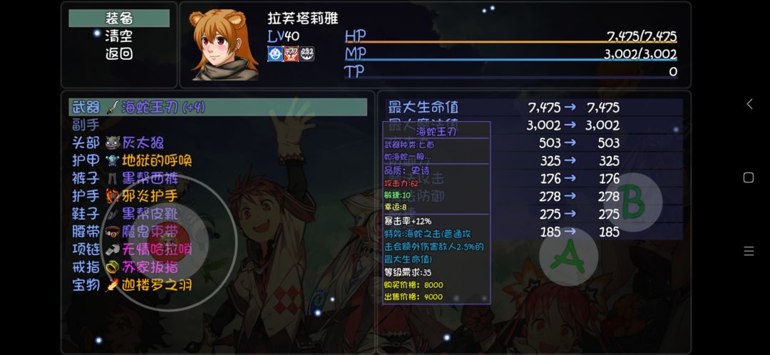2、装备:八卦打皮卡猿会回血,所以打BOSS时,小明夜空换海蛇刀,两把海蛇够打皮卡猿了,其他两个人防御或补血就行。