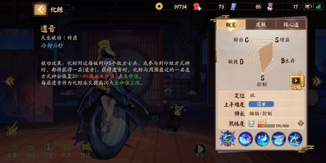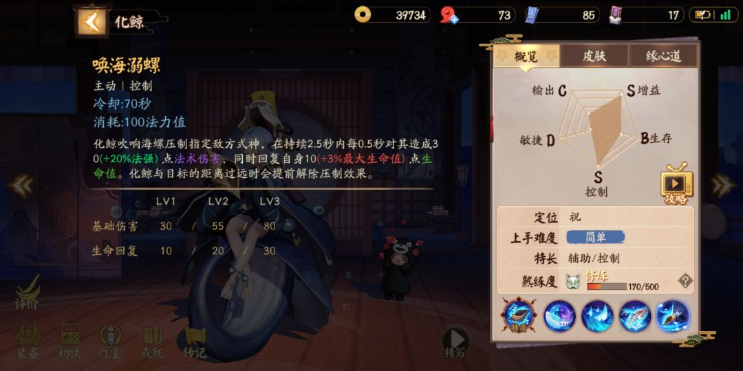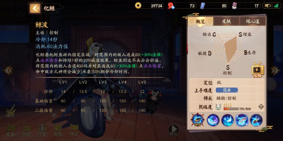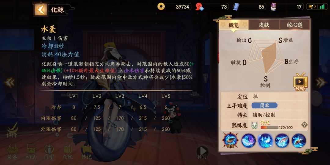 主要输出技能,三技能鲸波和本身可以减少技能50%的cd,团战用的好至少可以放3次。