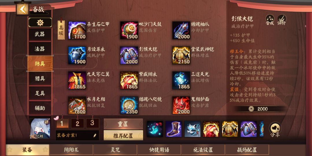 装备方面,辅助三件套必出,勾玉,法衣,金甲。