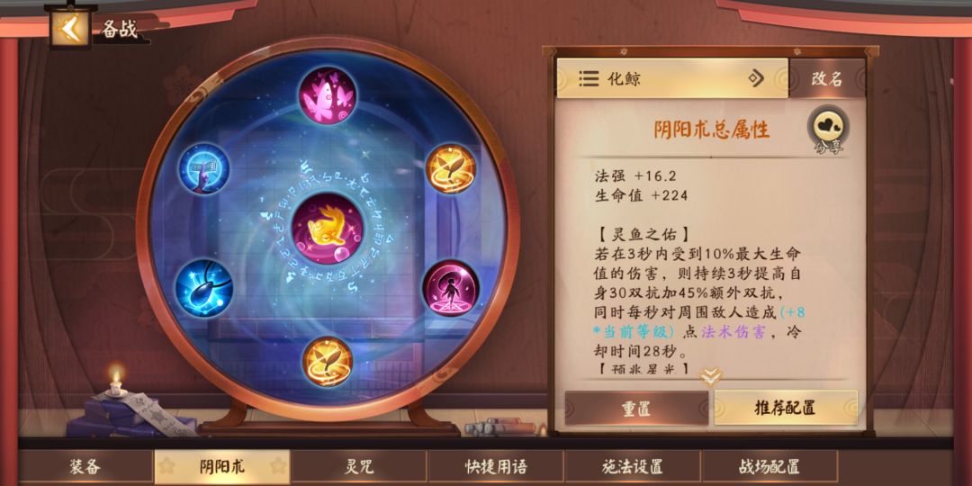 阴阳术选一个法强是为了打消耗,也可以换加攻击的,用普攻。通灵之力和天生被动配合,加强血量。