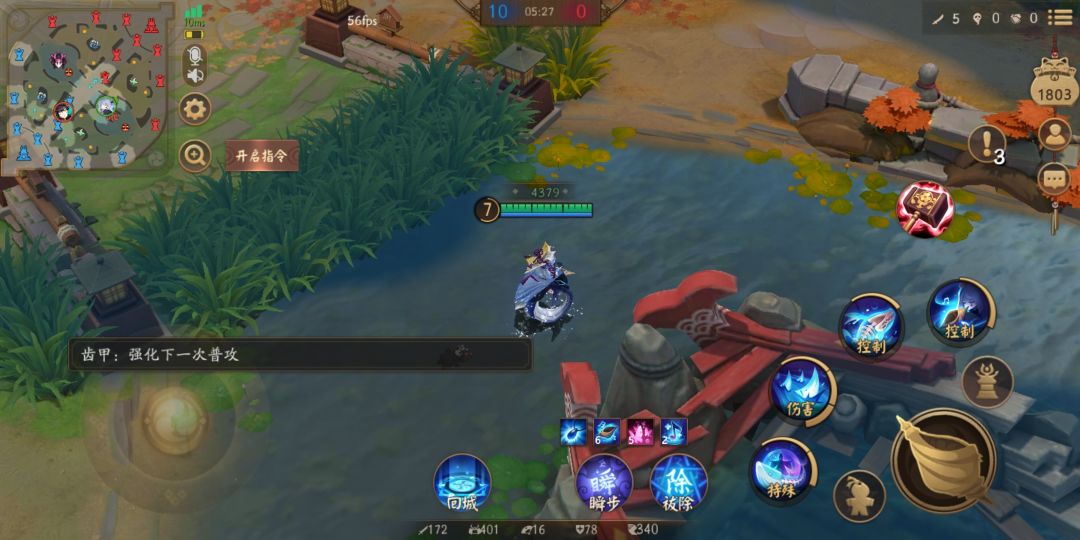 齿甲:加速并且加强下一次普攻。K头全靠他了。不过这个强化普攻cd很短,截图都来不及,应该和加速一样是2秒。