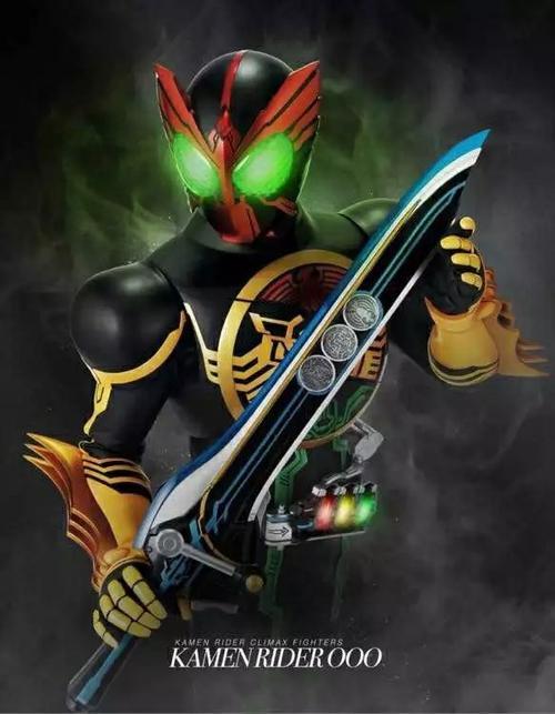 然后假面骑士OOO的样子,通常以鹰虎蝗联组进行变身战斗(也就是图中的样子)