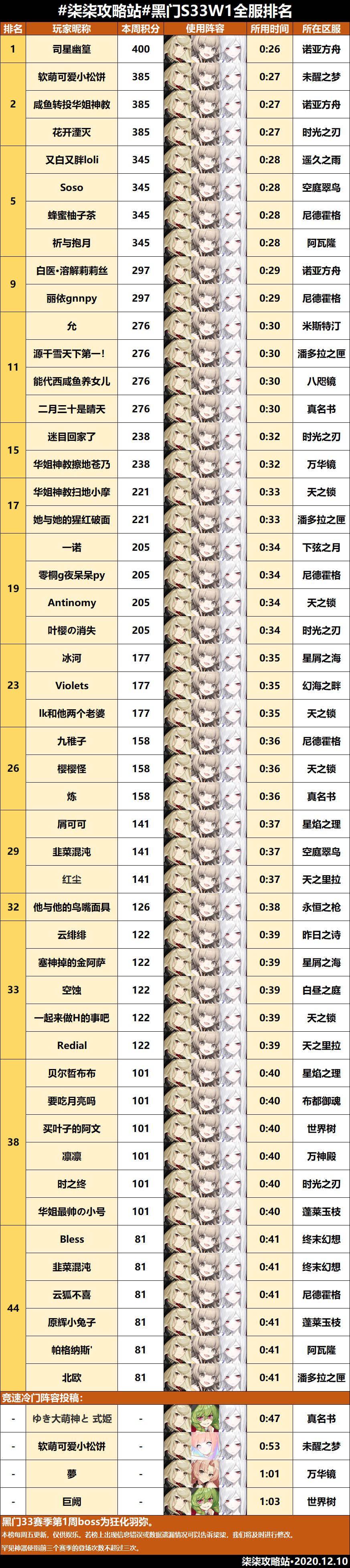 黑门试炼第三十三赛季第一周全服排行榜