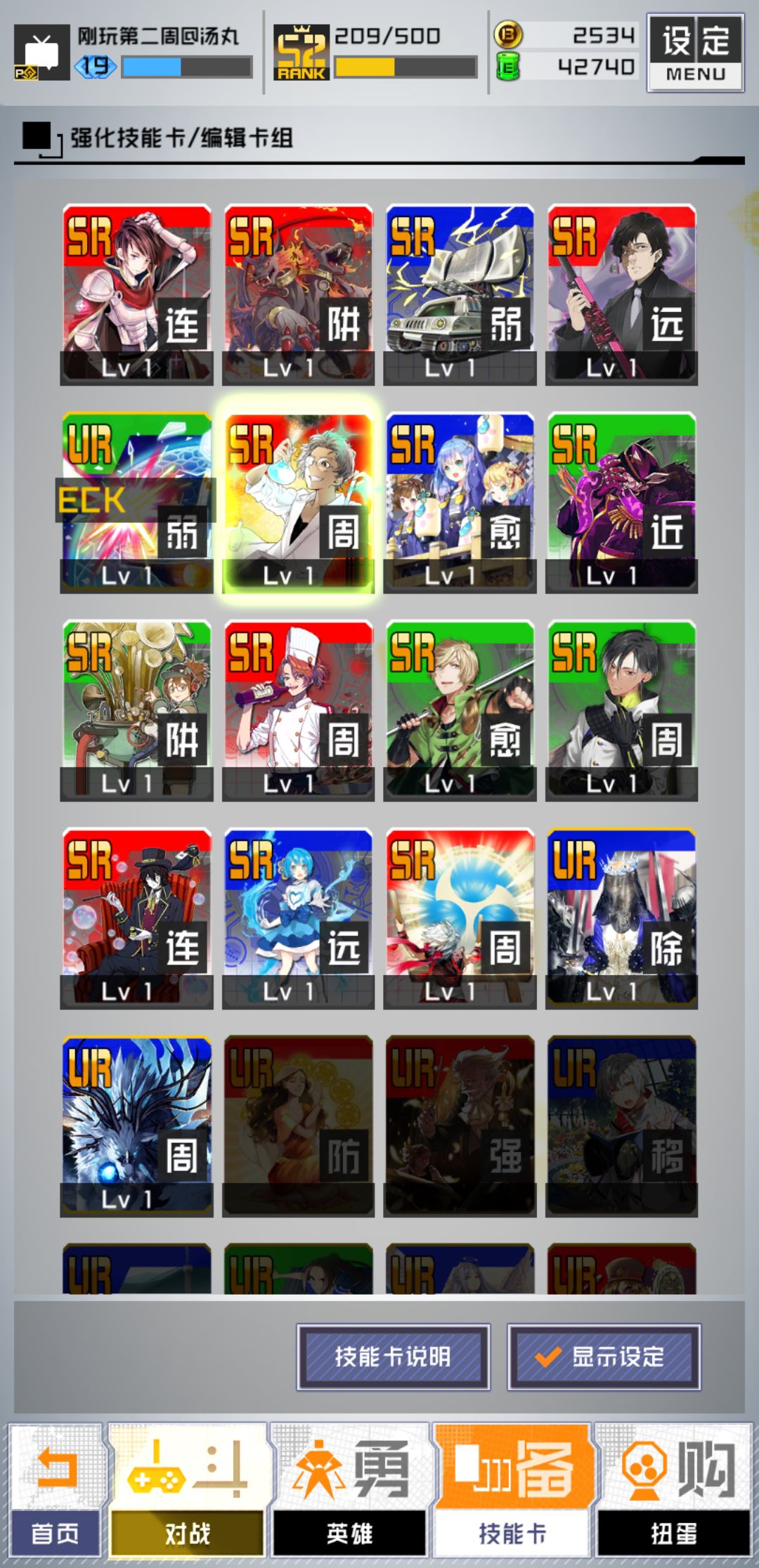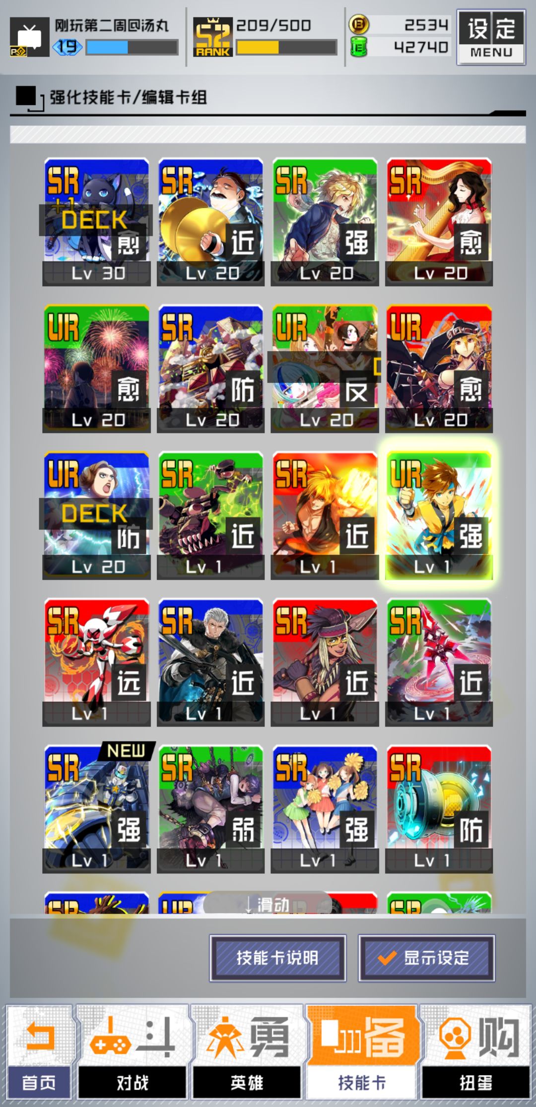 玩了快三周了,一些核心卡仍然是没有抽到,请大佬帮忙看看现在的卡可以玩一点什么角色。