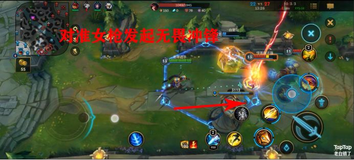 基础部分结束,我们就来进入一段实战看看赵信的威力吧!这一局我方队伍处于劣势,但老白战绩彪悍的赵信是全家最后的希望,必须肩负起carry的责任。此时我方青钢影守下塔是遭到对面双人组围攻,老白急忙赶去,残血的青钢影看见我们之后立刻用大招将女枪盖在塔下,而我们则使出无畏冲锋直直杀向女枪。