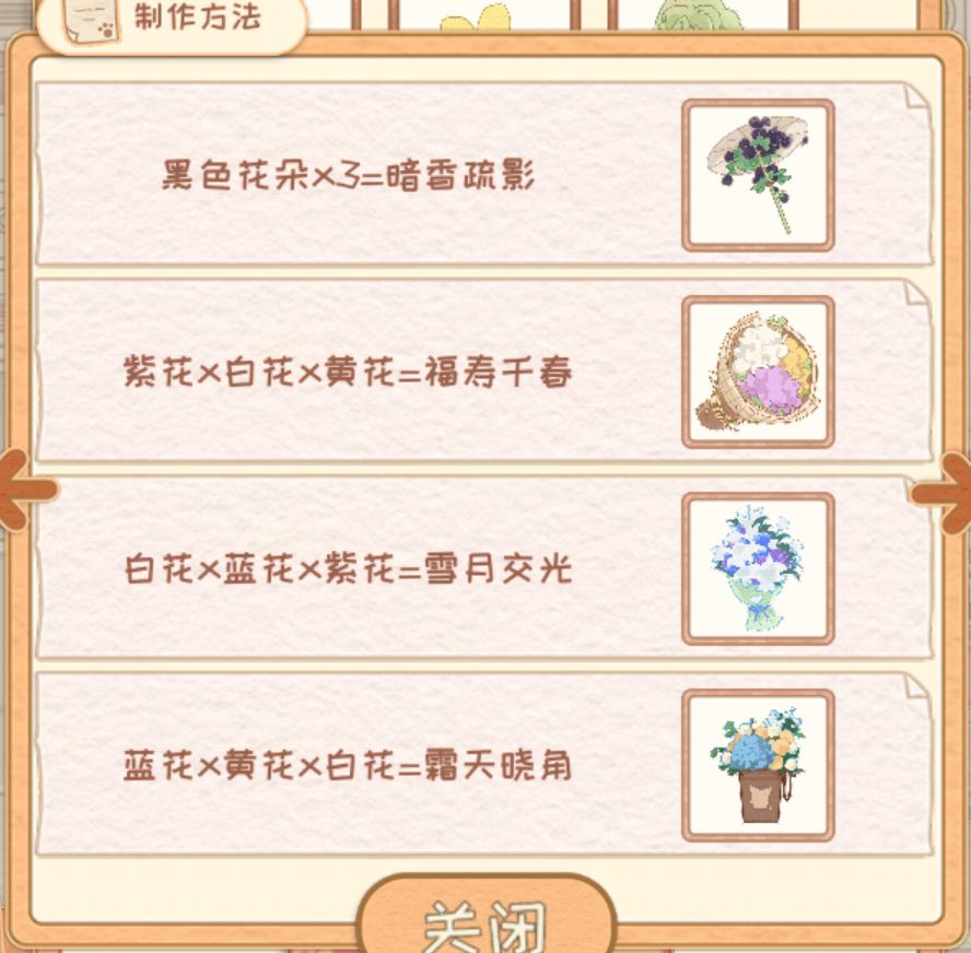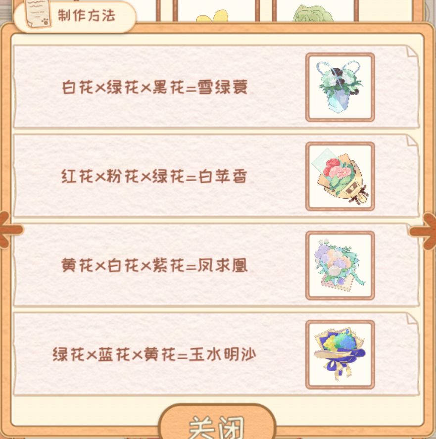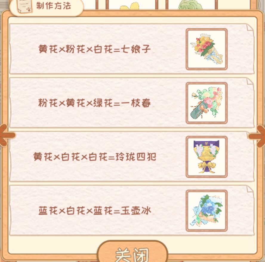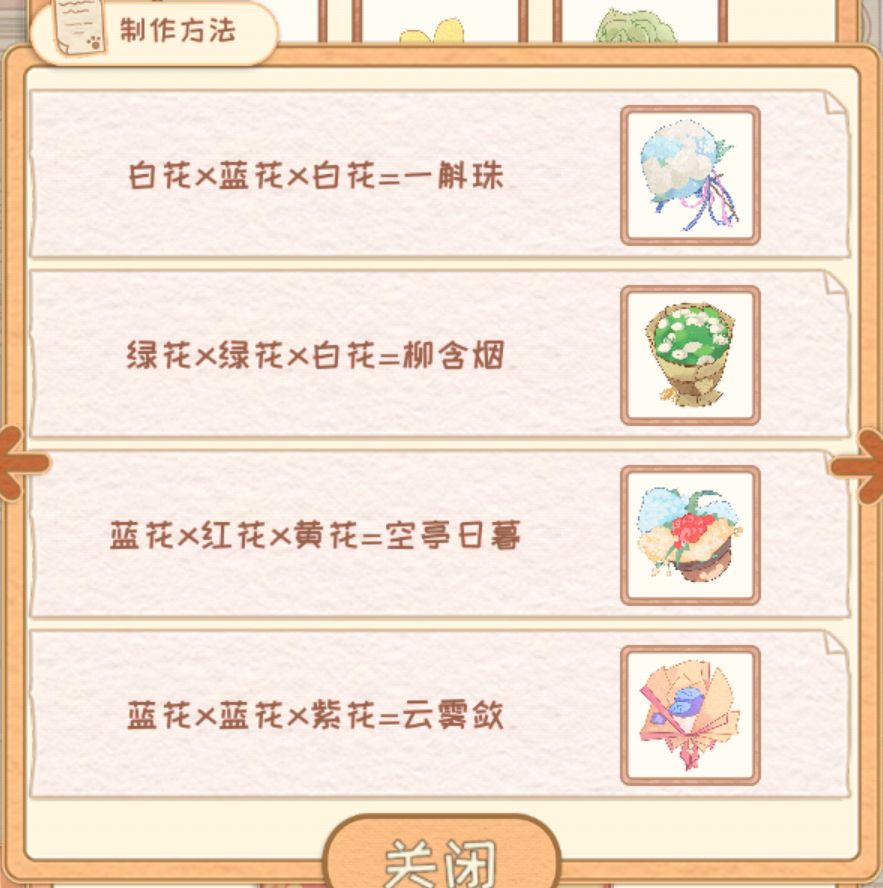 注意注意,花束配方里面顺序也是固定的,蓝黄白和黄蓝白出来的结果不一样