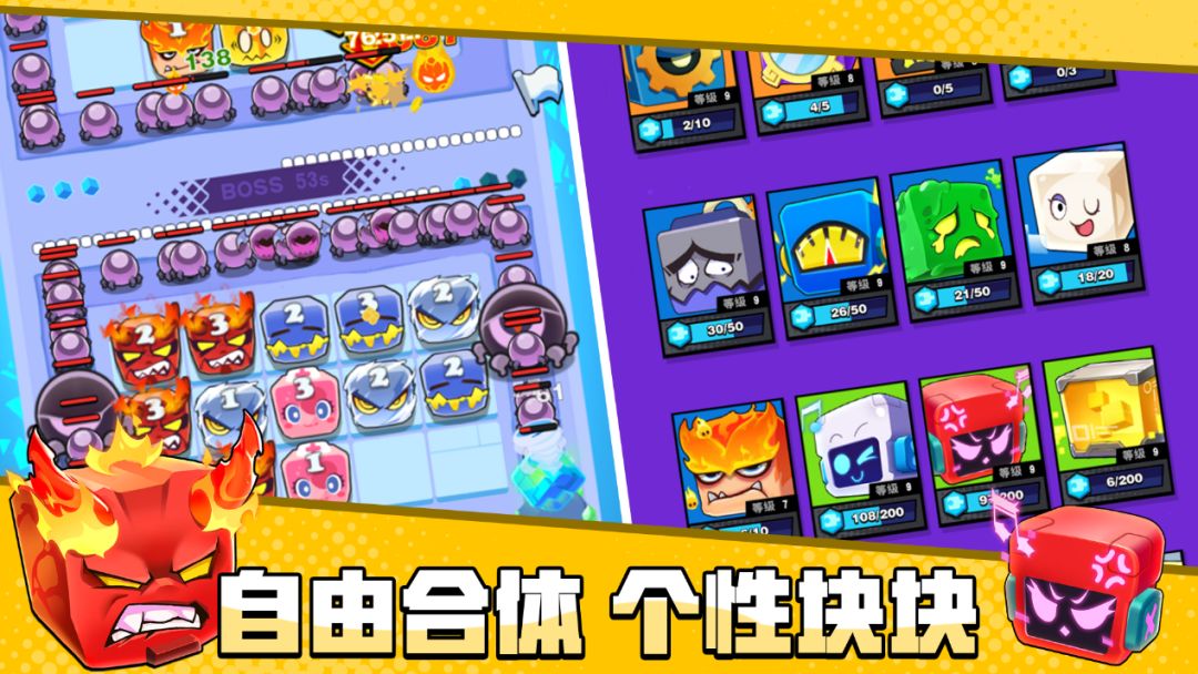 在PvP的对抗当中,决定胜负的最重要因素就是块块阵容的选择了。游戏中目前已经实装了超过三十种属性不一风格各异的块块,除了常见的溅射减速减甲等,还有独居特色的合成块块和PvP中干扰对手的块块。输出和辅助,如何搭配最适合自己的阵容?就看玩家自己的抉择了!