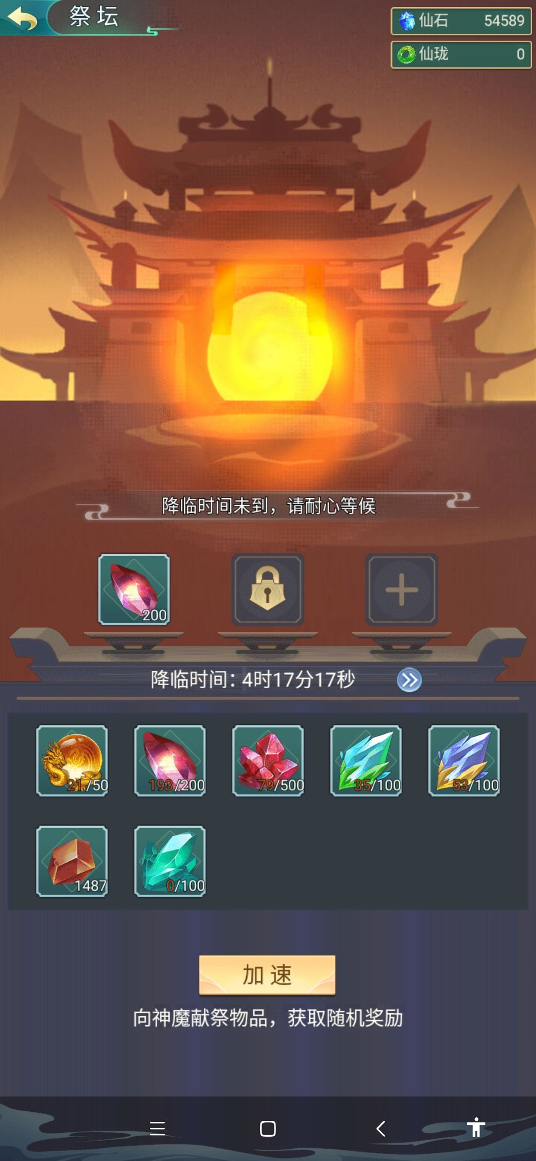 祭坛开通第二个格子要50仙珑,第三个要100仙珑。我以为一个格子50仙珑,所以第三个格子显示100仙珑。我就花100买了第三个格子,以为三个格子都开通了。结果第二个格子还是锁着的。我花了100仙珑买的第三个格子还是不能用。