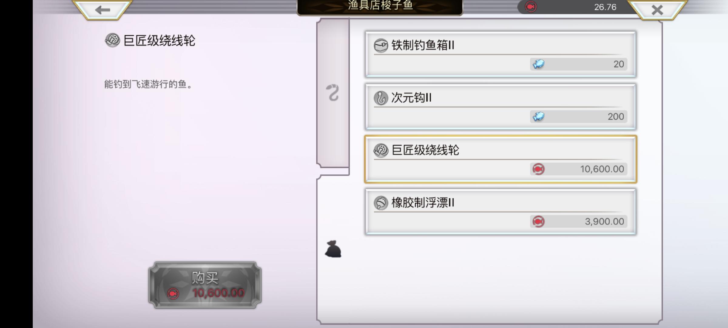 次元钩做出来了,鱼点还差一万点