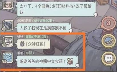《最强蜗牛》这款游戏是偏向于单机玩法的,但聊天室、俱乐部、PVP玩法也是有的,说起聊天室估计各位蜗爷都能讲出不少乐子,游戏中的聊天框除了可以聊天之外还能领取别的玩家和NPC发的宝箱,比如NPC房地产大佬发的红包、玩家发的众神礼包、酋长大礼包等等。当我们领取了玩家的众神礼包之后还会自动发一句感谢的话,但是当发红包的人取名不怀好意的时候,就会有很多好笑的事情发生。