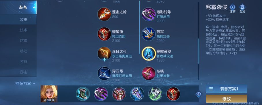“寒霜袭侵”是《王者荣耀》体验服近期调整的一件新装备,其效果为属性方面+80物理的攻击和+30%攻击的速度;加上唯一被动(寒霜):普攻会对敌方英雄施加寒霜效果,最多可以叠加4层,每层会对目标减少15%攻击的速度,持续1秒。