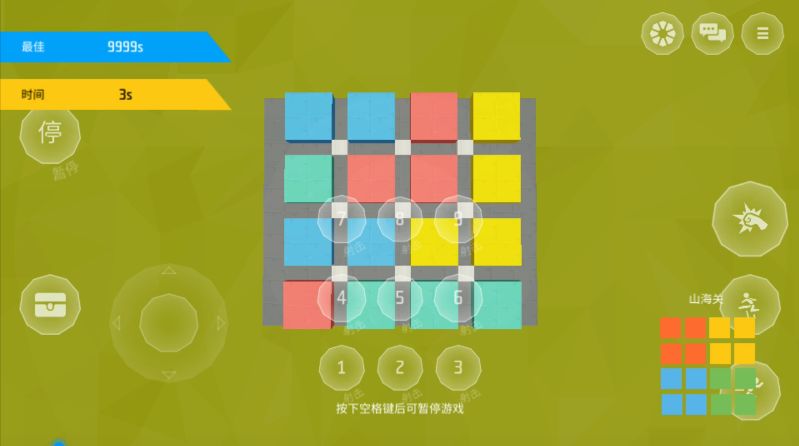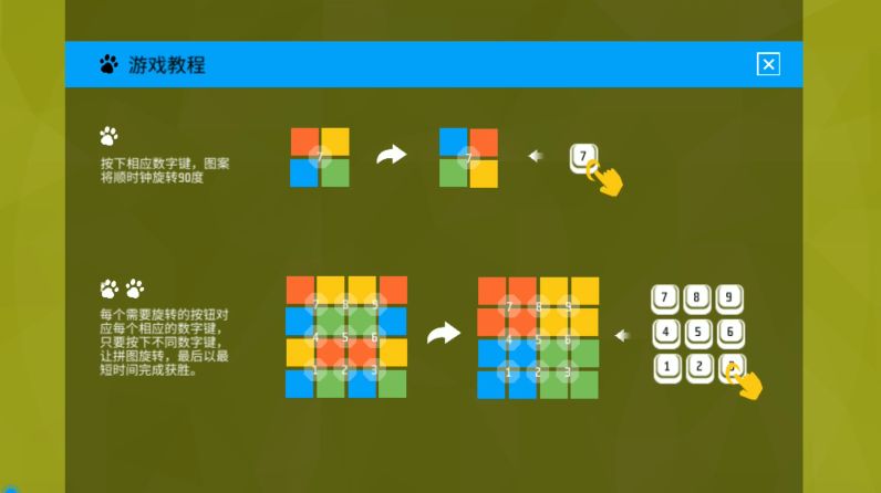 通过色彩方块中间的数字键对方块进行旋转,达到要求的图案……看起来很简单的亚子~可是这个游戏真的有这么简单吗?