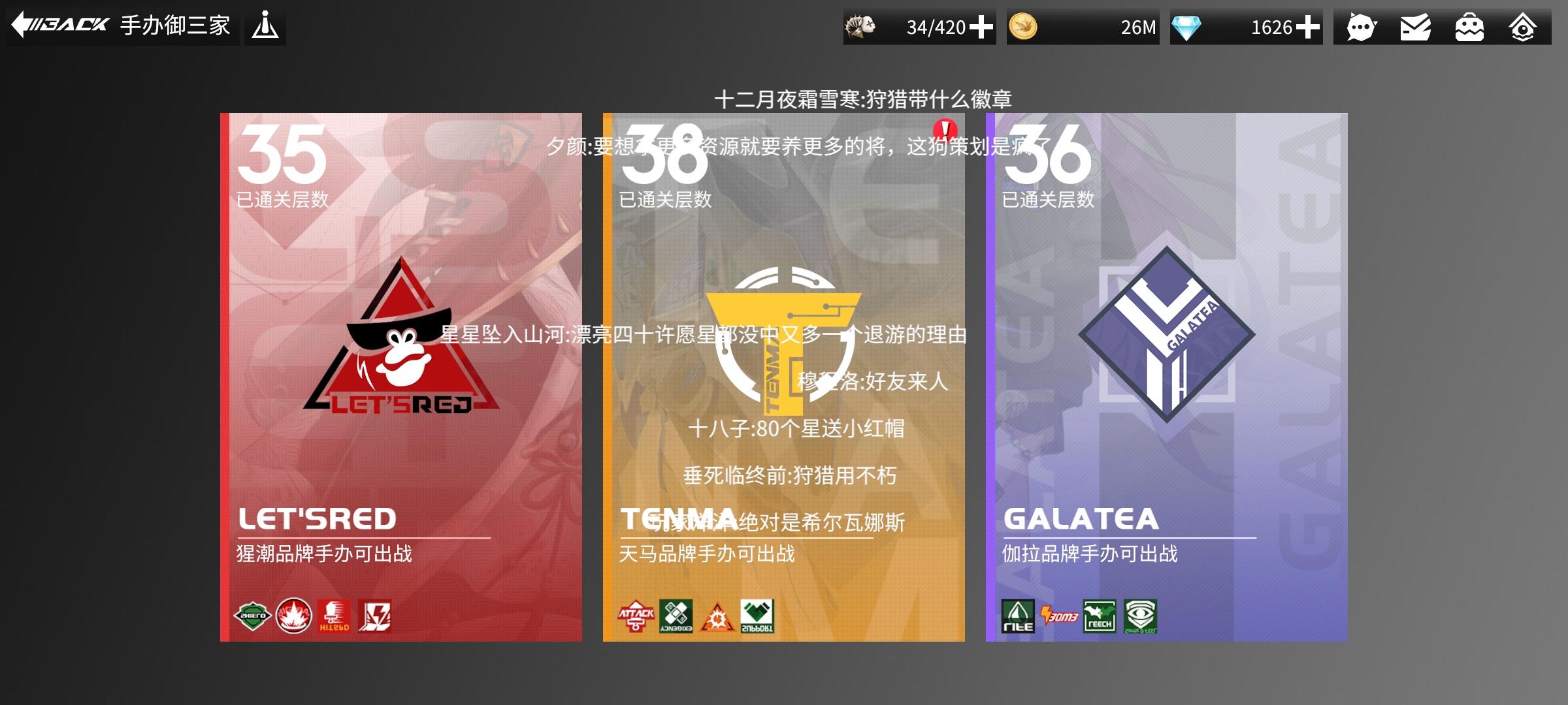 220级钻一狩猎和钻一赵云带着我180的阵容推进31章了!四星斧子和四星樱还有三星梅根也是大功臣~