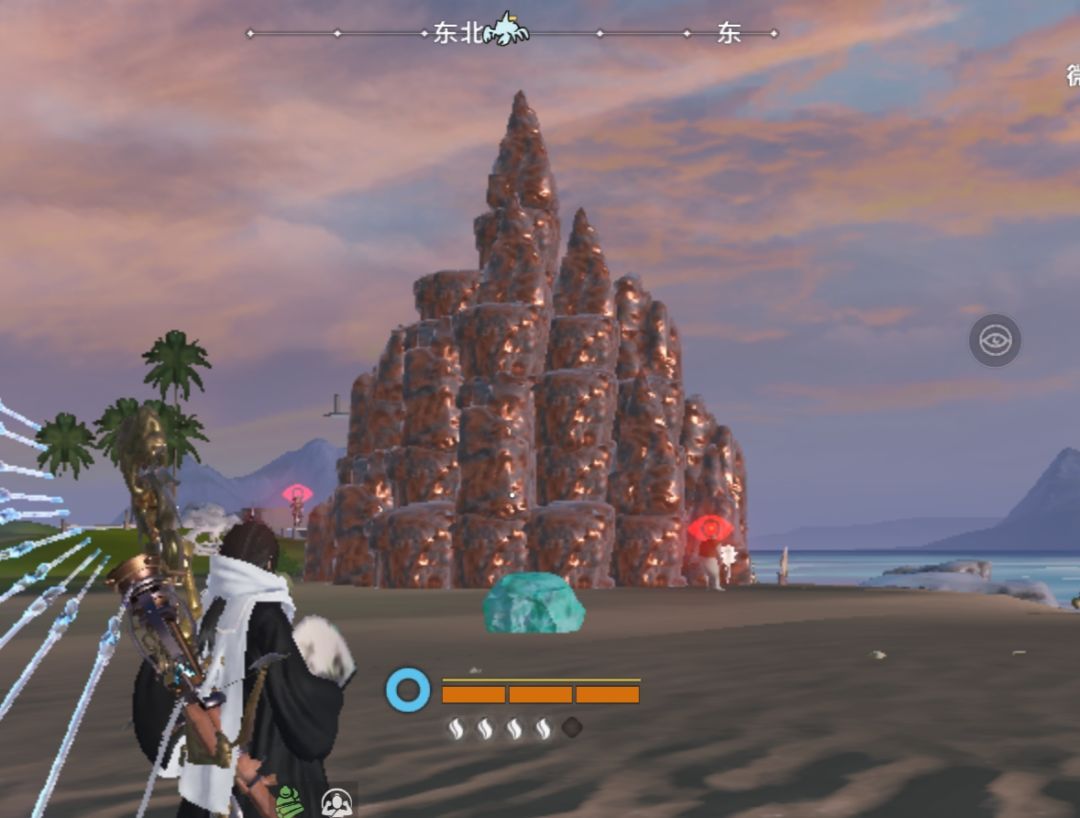 最后讲神碑(敲黑板),神碑第一名是有额外奖励的,这个上面讲了,但是队伍开神碑一定要小心附近有没有人,因为他们很有可能会抢,毕竟本游戏机制还是看输出的,对面队伍输出比你们高那么宝箱就归对方了,就算不归对方对面也有贝币,大荒货币,也血赚不亏了。神碑刷新时间15min。