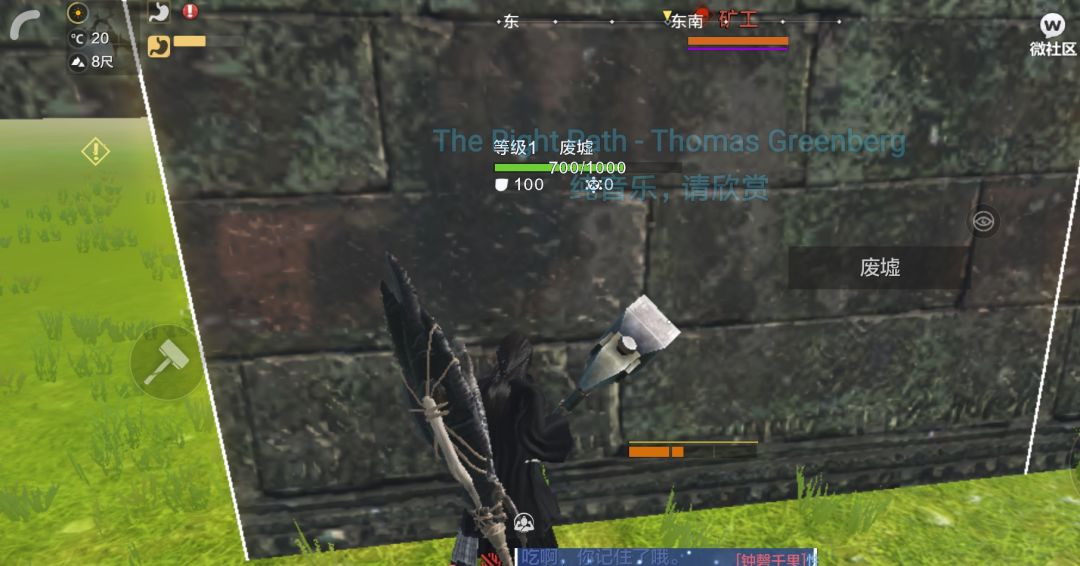 我们打战斗图腾的时候旁边的那个公共建筑是废墟,用锤子砸废墟便增加攻城经验。如图