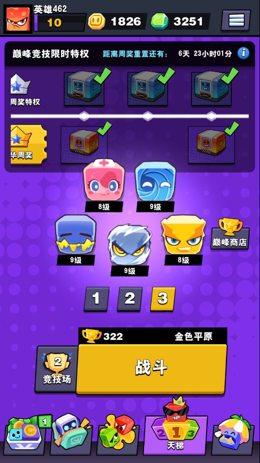 随着巅峰模式等级的提升,玩家可以获得箱子,金币,块块等多种奖励,还能解锁全新玩法,赶快提升自己的等级,前往巅峰模式一起爬天梯吧!