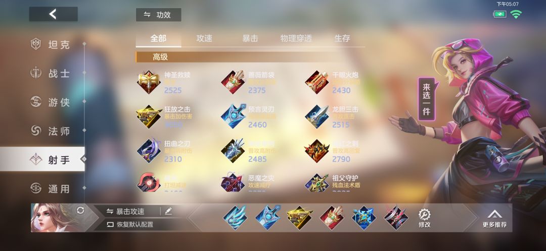 装备这方面也是比较常规的暴击攻速出装,前期可以先出拆信刀提高暴击,然后补几件提高攻速的小件装备;后期出风暴射手虽然有利于更好的输出前排,但最好还是对敌方的高坦度英雄避而远之,因为新版的防御装备实在是太过于强劲了,荆棘刺盾、正义壁垒这些防御装备对物理射手的威胁十分巨大!