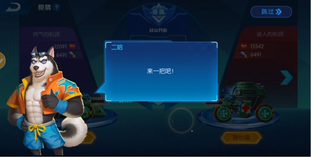 1、二哈邀请你去竞猜特别的战车较量;压中的战车胜利了将获取部件加成的奖励;