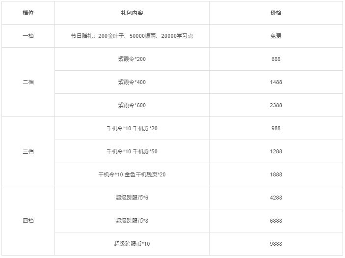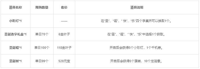 活动一:活动期间将限时上架圣诞节礼包,礼包内容如下: