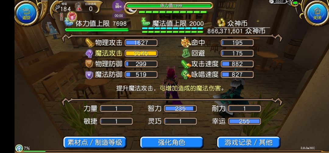 拳系自带50%魔攻转化,魔剑技能的转化点满又有50%,所以武器攻击可以100%反应到魔法面板上。