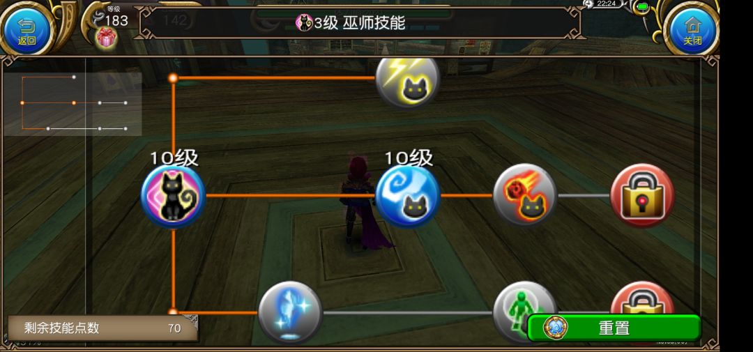 制造技能旁边,巫师技能,可以选使魔的颜色和类型,除了第一只猫都需要180露珠购买,角色通用。
