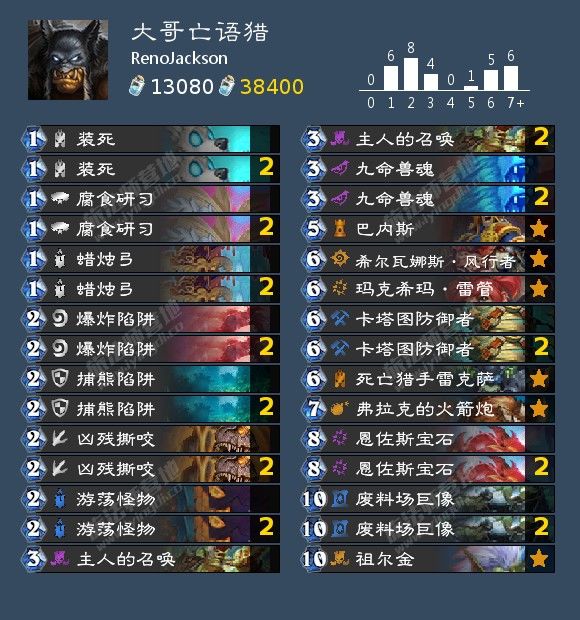这是RenoJackson自组打上外服传说的一套大哥亡语猎,31场71%胜率。