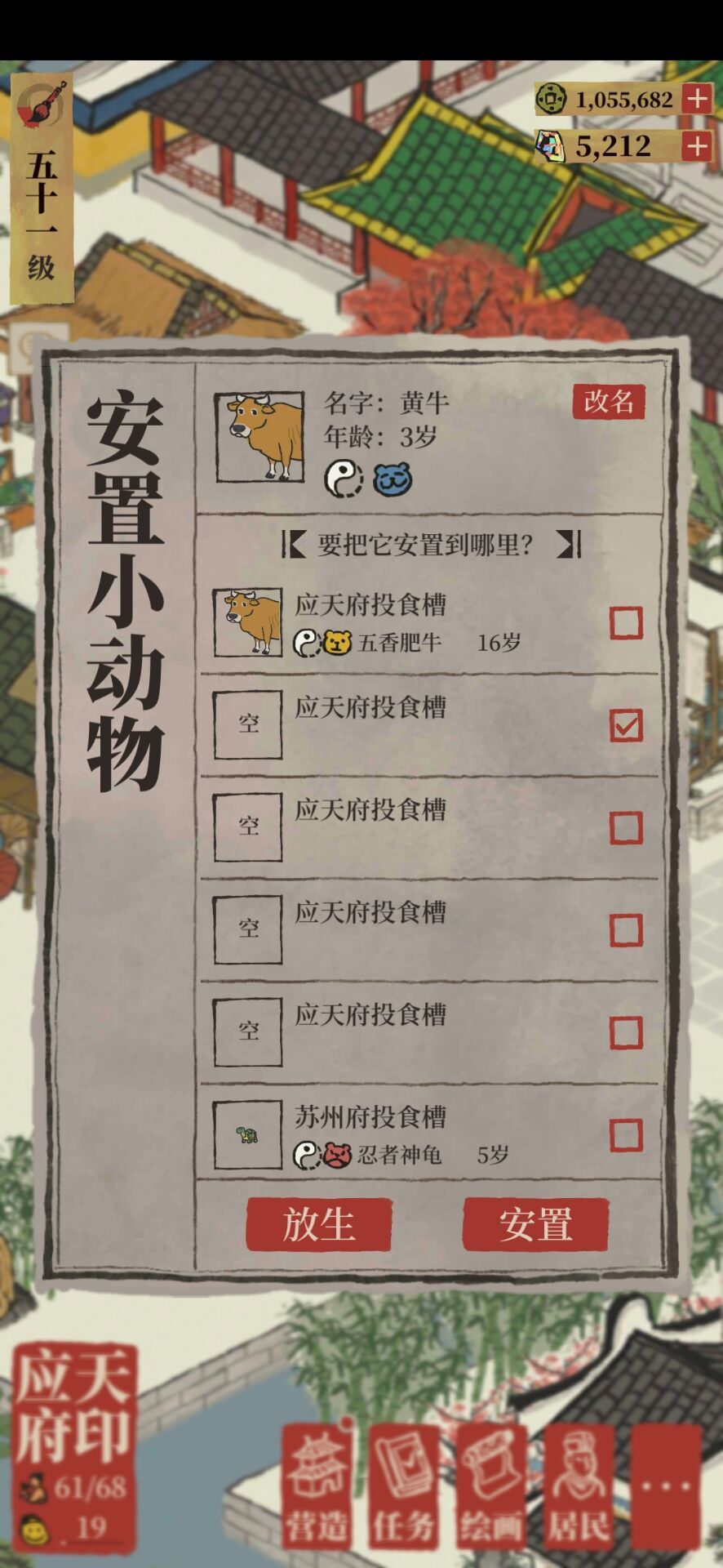 点击动物名字右边的红色翅膀符号可以放生。