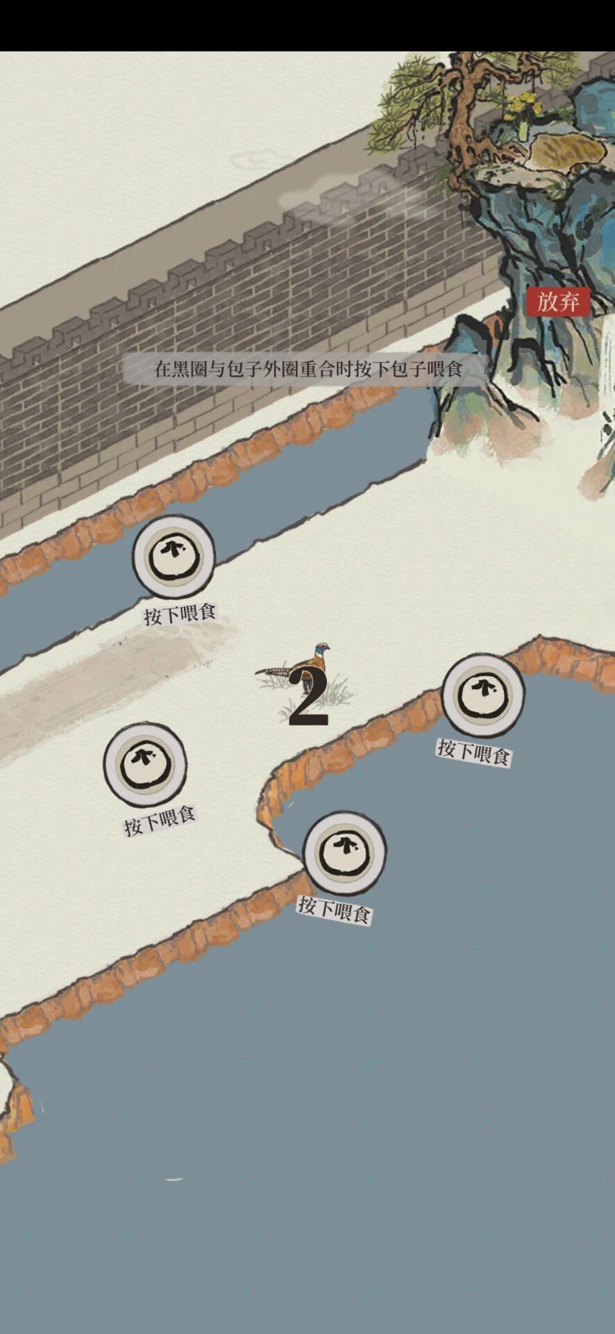 A:如图,在黑圈与包子外圈重合时按下包子喂食。