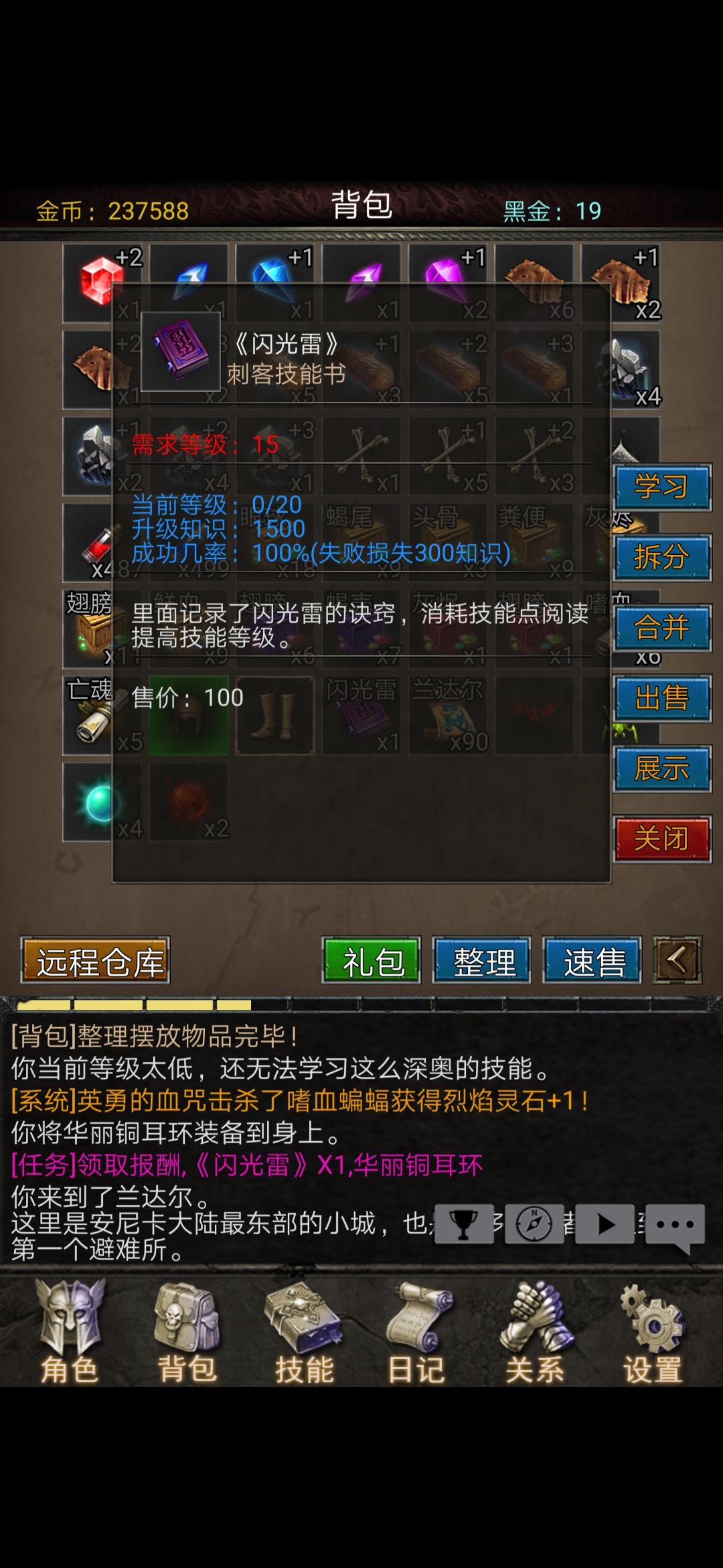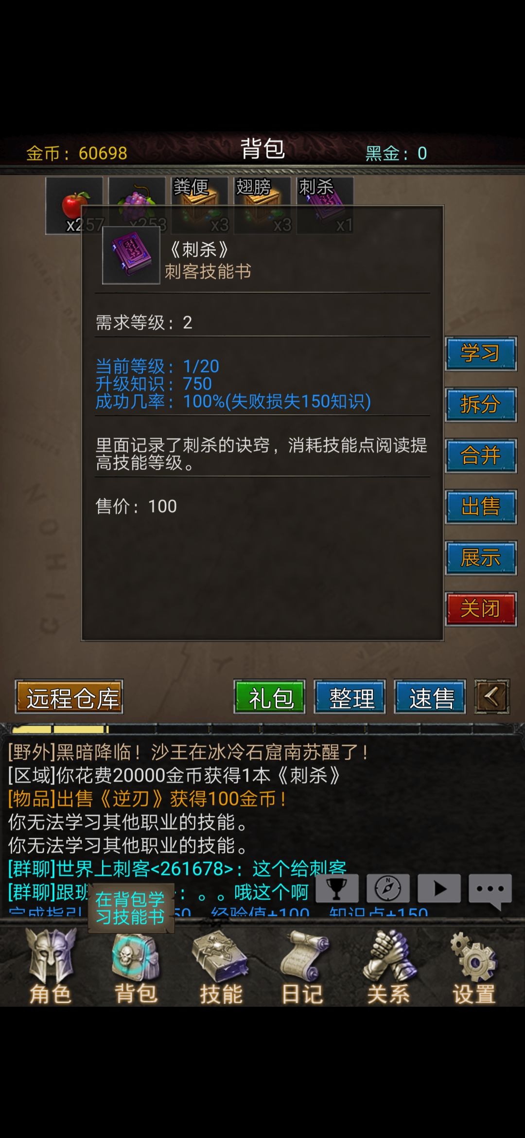 酒馆上面买技能书学技能,我还买成战士的了,卖了才100金币,血亏2万!