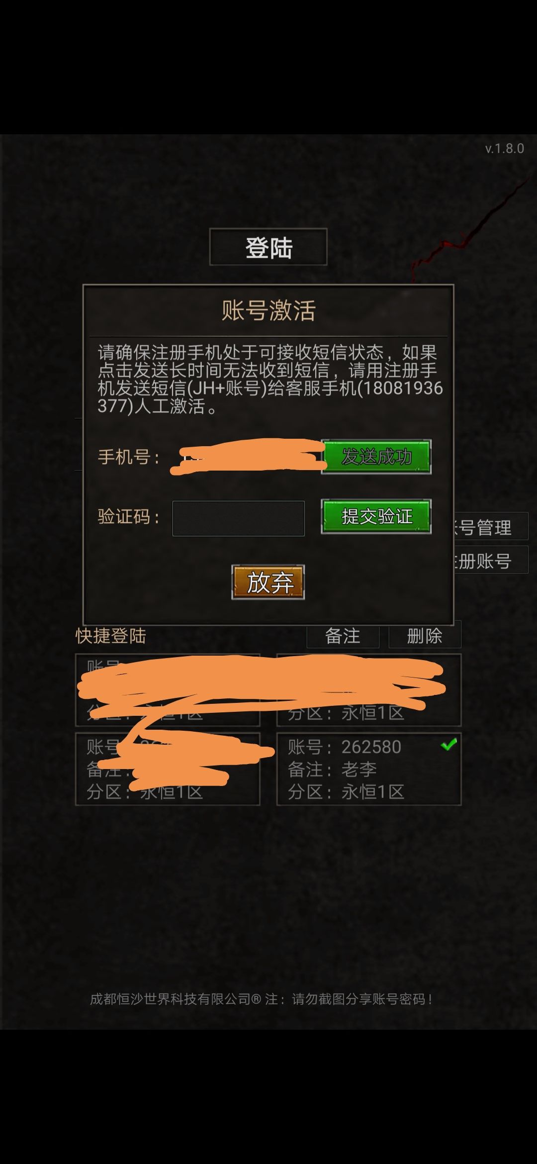记得退出激活一下,要不回来会被锁,如果收不到验证码,给客服老李发信息,上面有电话。