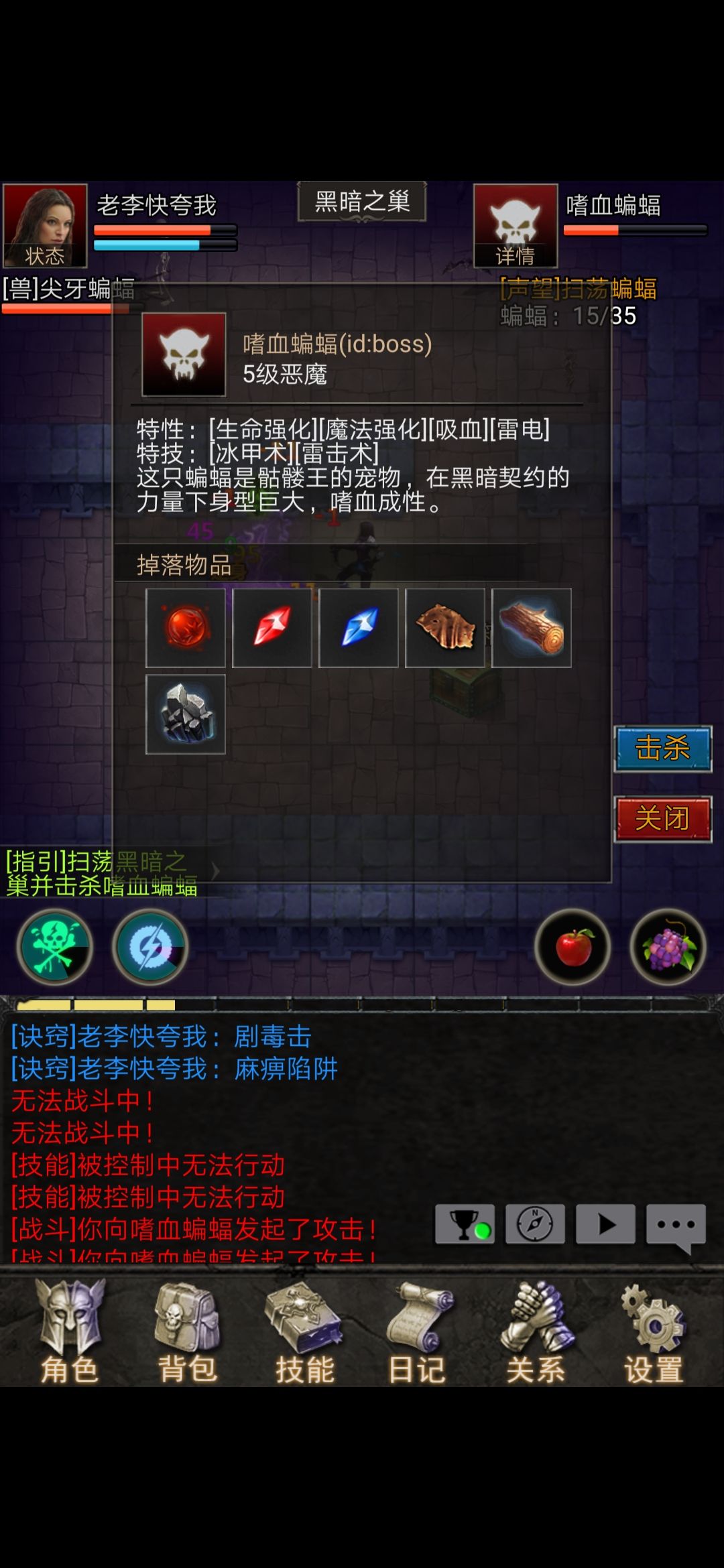 运气不好,打遍全图才打出钥匙😭😭😭,15级才有群攻技能,我一点一点清的好痛苦😭😭😭图上是先把boss打了。