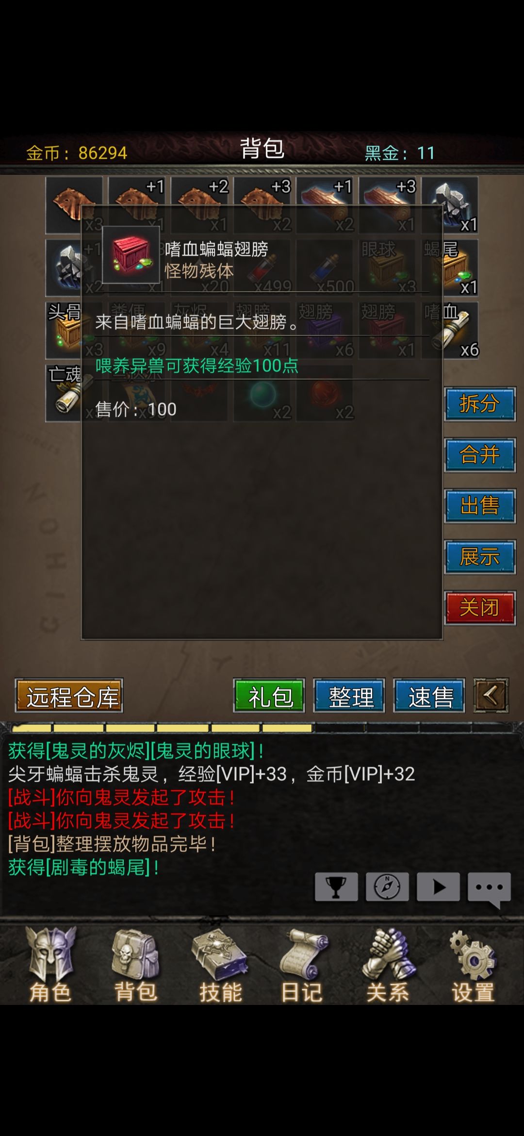 这个boss材料我们叫红箱子,家族(就是行会)要用,记得留着。我当初全都喂给没用的新手蝙蝠了....