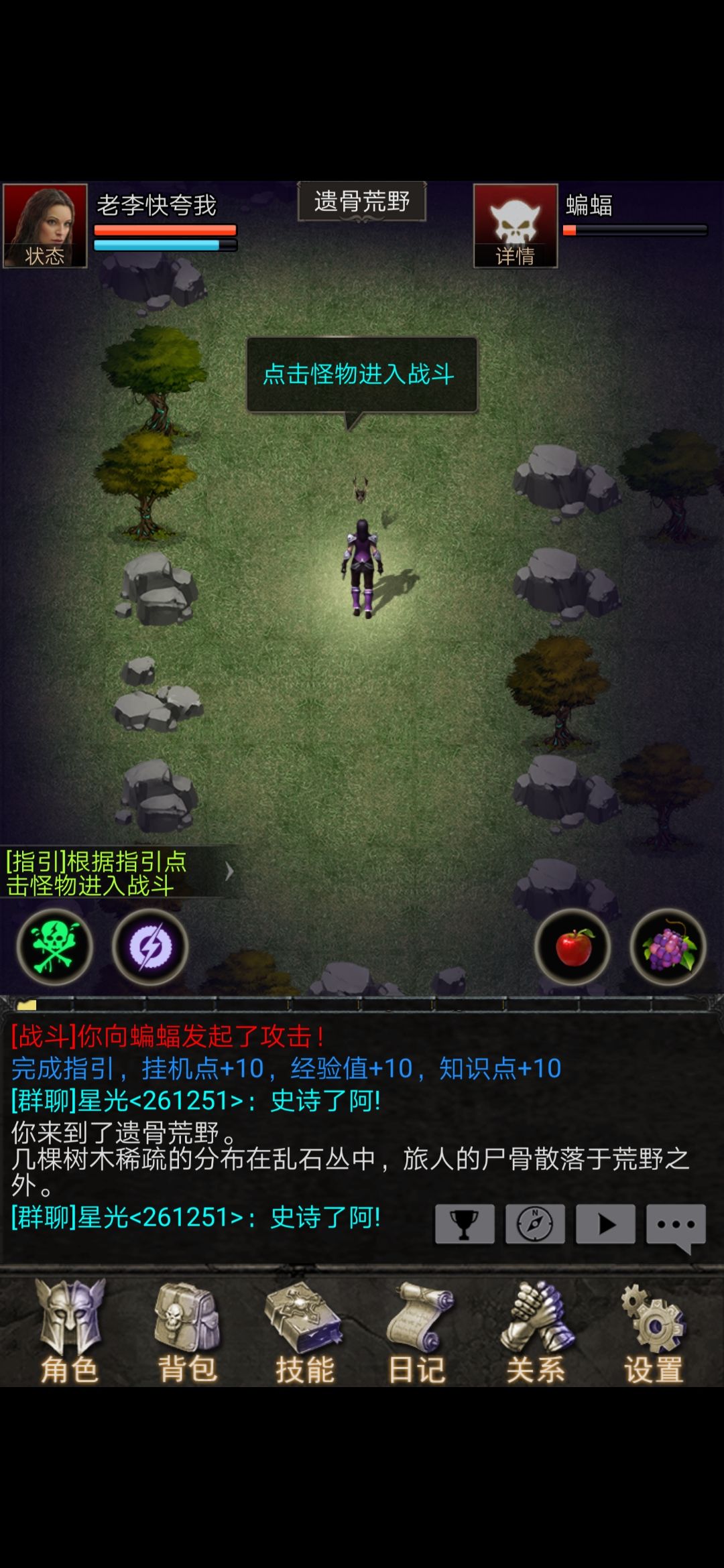 直接点怪物就会攻击,攻击速度恒定的,老李说防止外挂用的,也不知道有没有用……点技能解决它!注意的是,没点怪的话技能也能空放,游戏机制还需要熟悉,主动技能CD都比较长。打boss时放空很尴尬。