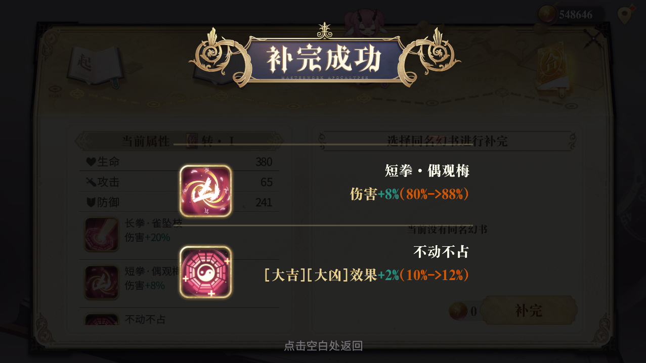 那么以上就是幻书补完的详细介绍了,通过起承转合,强化幻书的技能,还能提升幻书属性,让你的幻书实力更强。快点收集同名幻书或是纯白幻页进行补完吧!