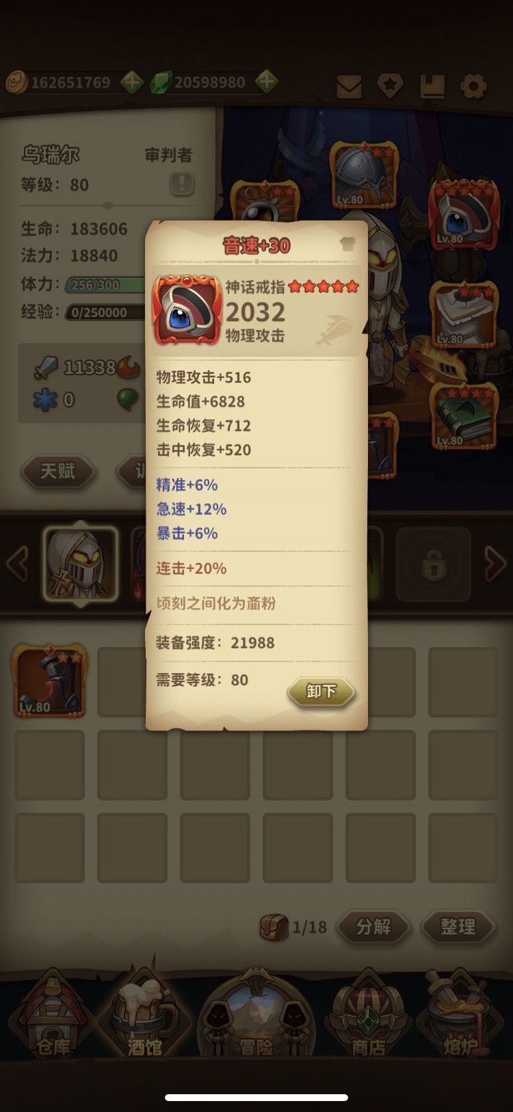 装备戒指:神话音速,增加连击效率击回加血,添加续航能力!
